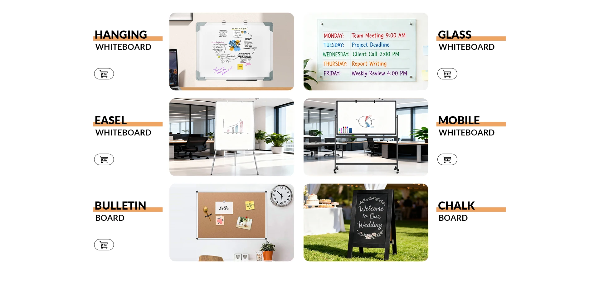 Main categories: Whiteboards, Bulletin Boards, File Trays, Pen Holders, Clipboards